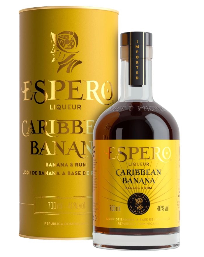 Espero Caribbean Banana is a velvety smooth rum liqueur made with natural banana and chocolate. It is an exotic and creamy liqueur where real banana and soft chocolate blend with Dominican rum aged for up to 7 years. The result is a rounded, sweet and irresistible liqueur that combines tropical fruit with deep rum character in a silky texture.