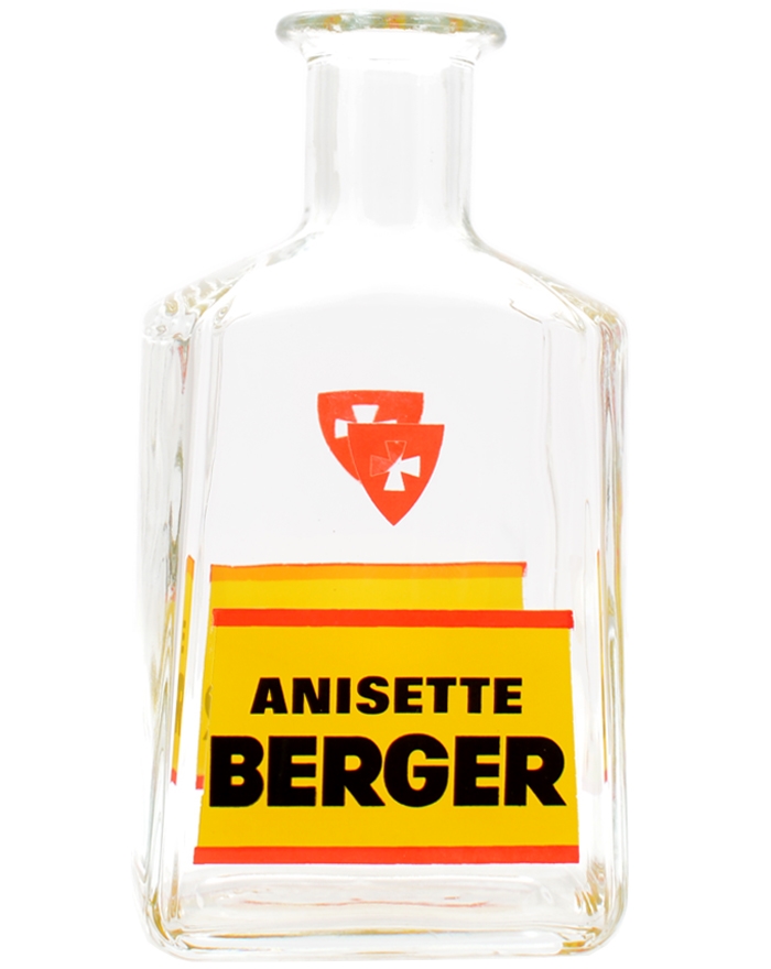 Add a touch of vintage French charm to your bar or collection with this iconic Anisette Berger serving carafe. The square-shaped glass bottle is made of thick, clear glass and features the classic yellow and red Berger logo with bold black typography. At the top, the distinctive red shield with a white cross stands as a symbol that instantly evokes tradition and quality.